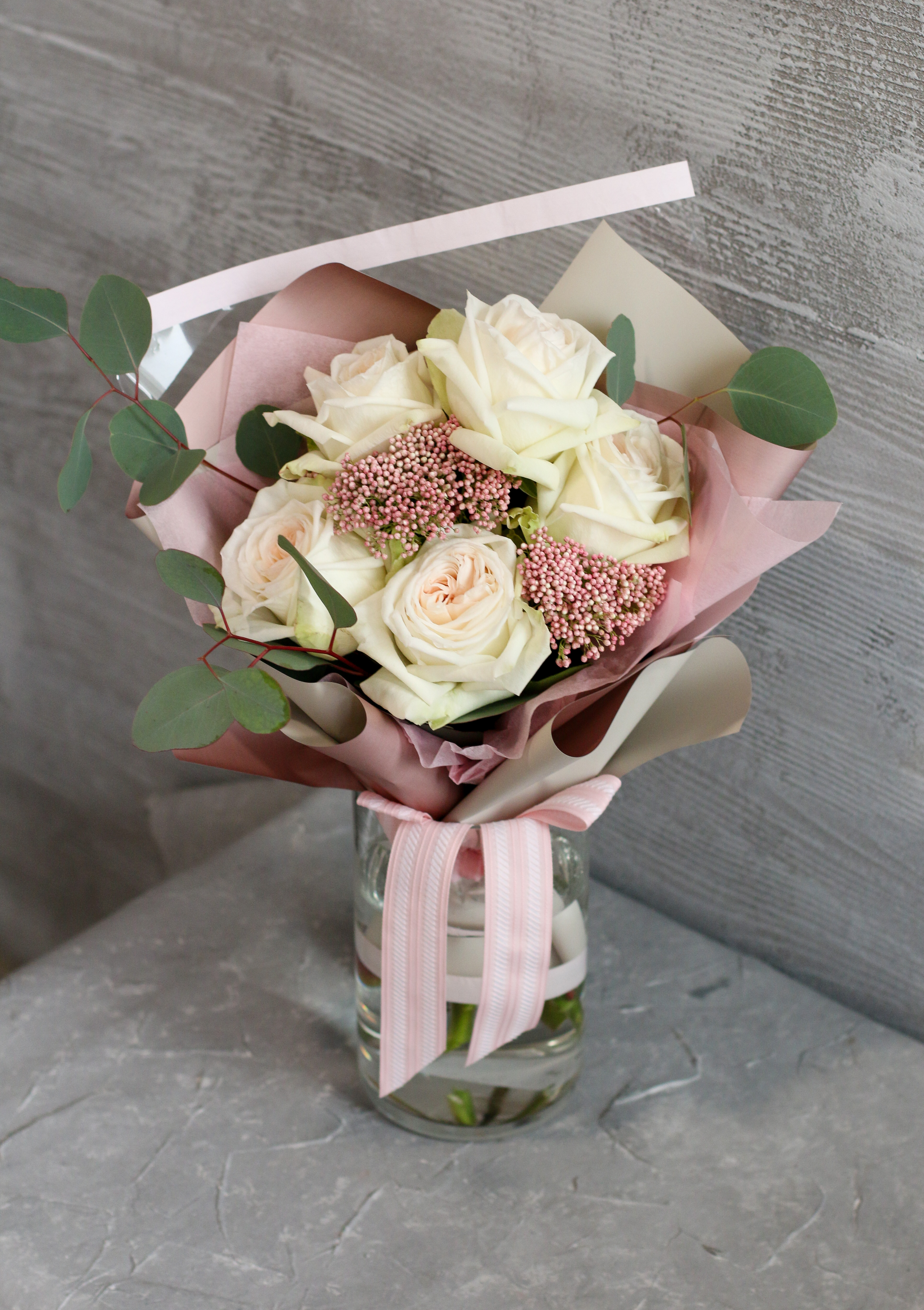 Состав букета может быть незначительно видоизменён в зависимости от сезона и наличия цветов. Уточнить подробности по наличию можно у менеджера по тел.+375(44)544-77-33