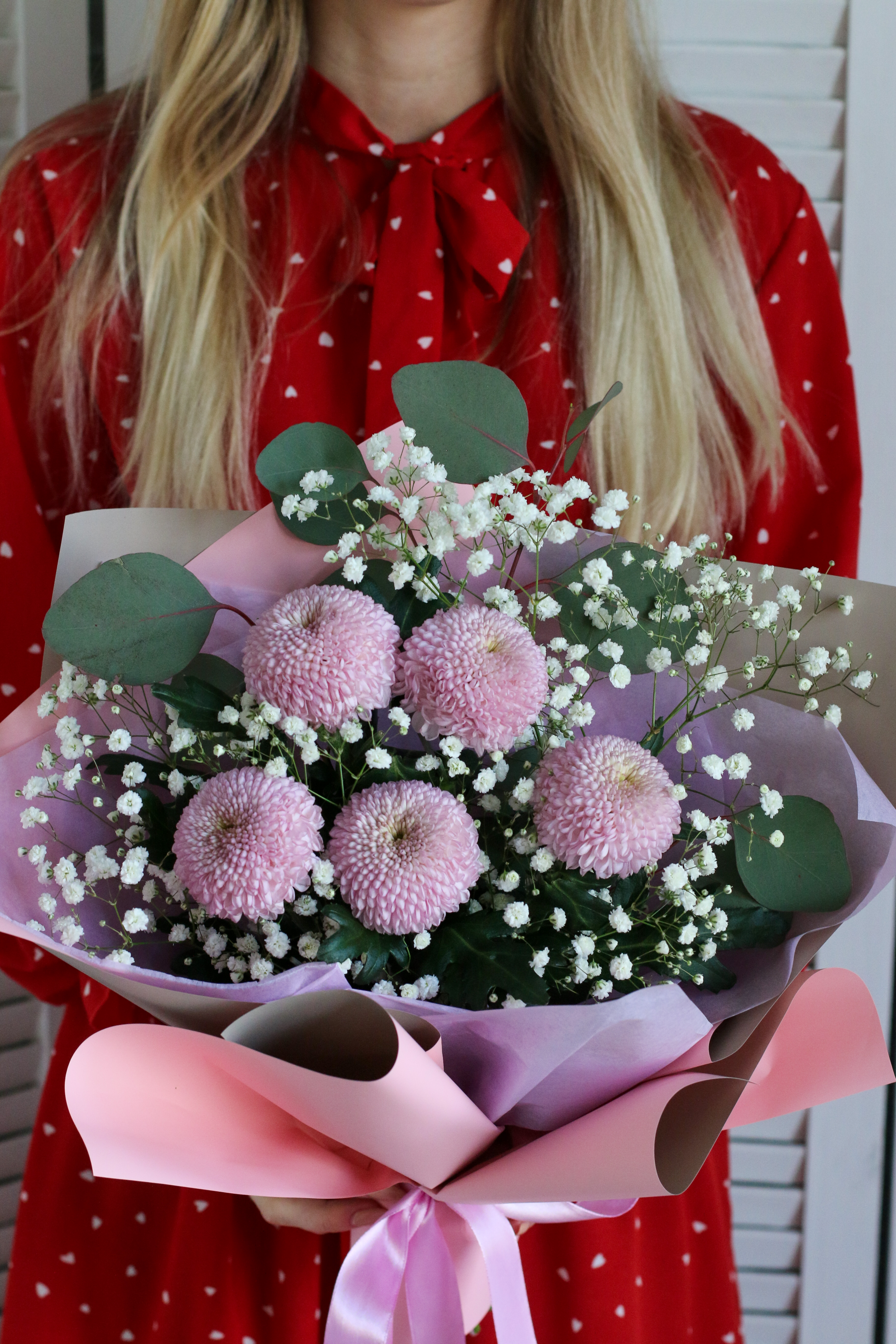Состав букета может быть незначительно видоизменён в зависимости от сезона и наличия цветов. Уточнить подробности по наличию можно у менеджера по тел.+375(44)544-77-33