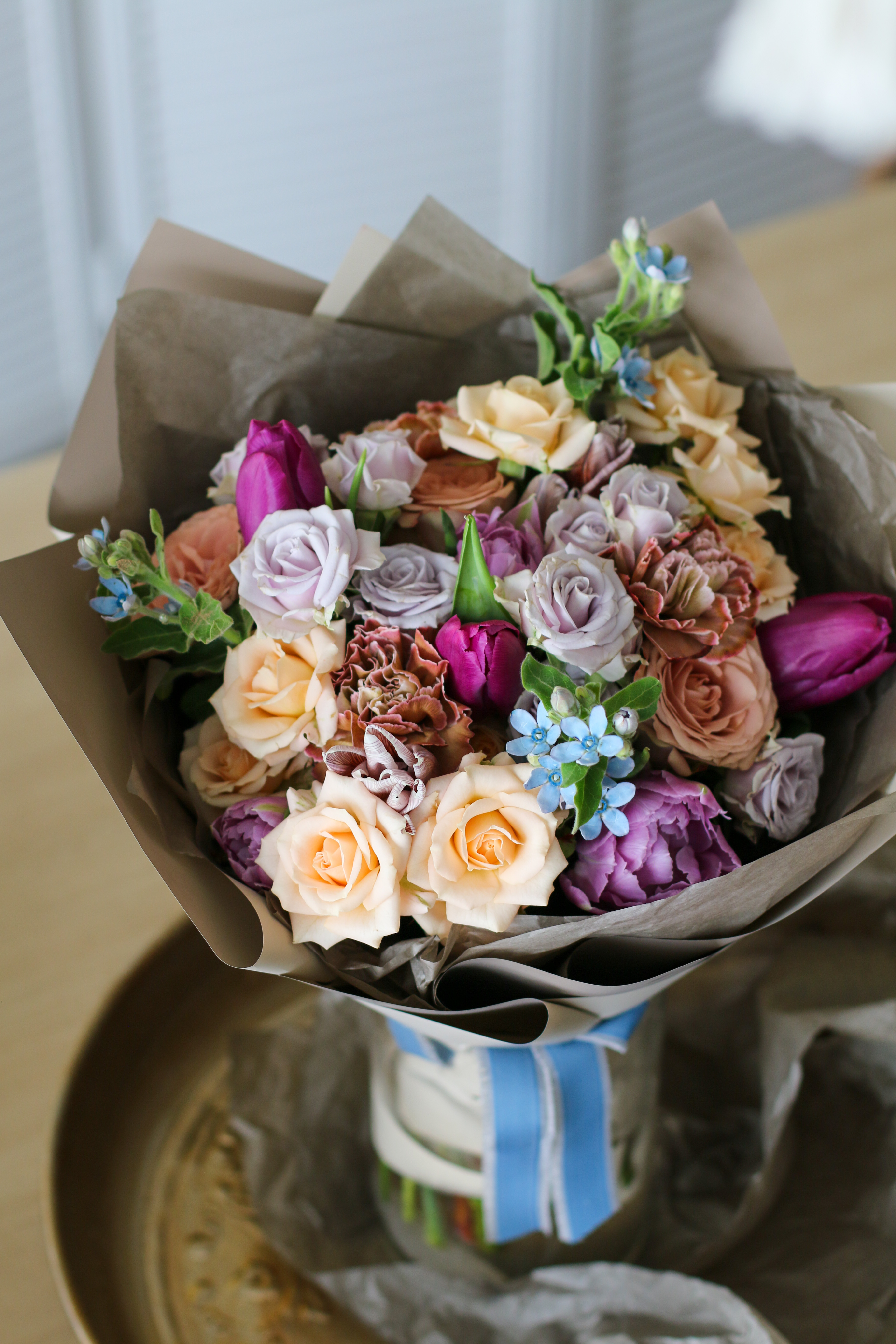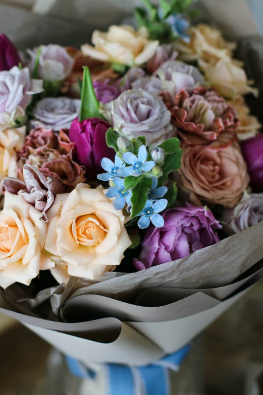 Сборный букет с тюльпанами, кустовой розой и гвоздикой Браун Молли подарит хорошее настроение любимым.