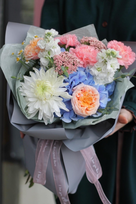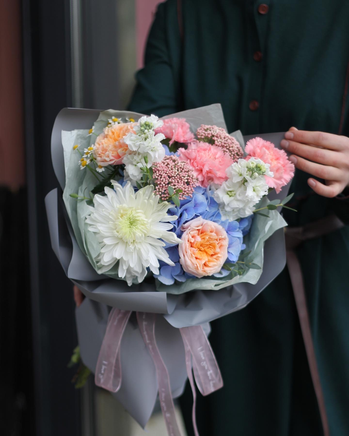 Состав букета может быть незначительно видоизменён в зависимости от сезона и наличия цветов. Уточнить подробности по наличию можно у менеджера по тел.+375(44)544-77-33