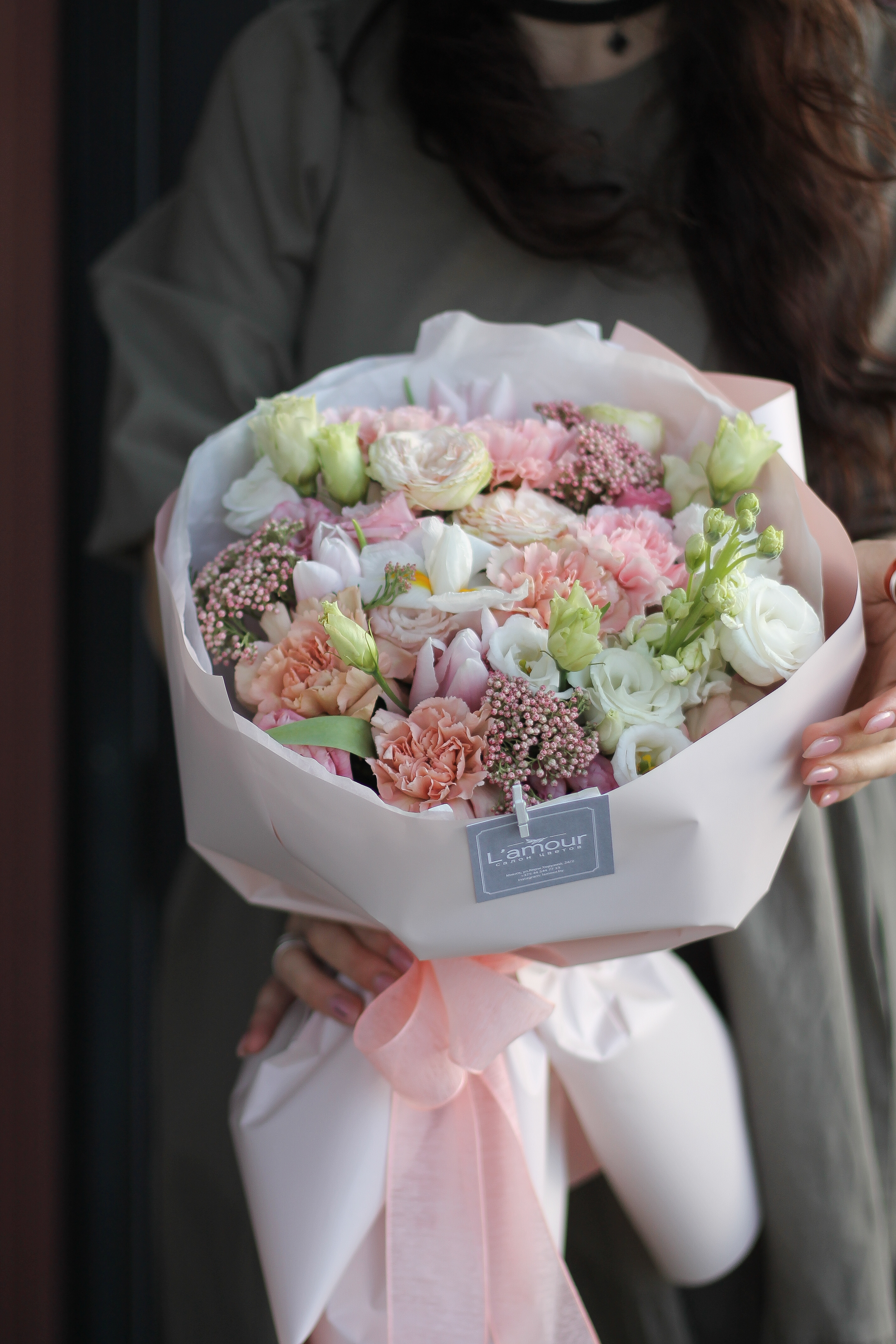 Состав букета может быть незначительно видоизменён в зависимости от сезона и наличия цветов. Уточнить подробности по наличию можно у менеджера по тел.+375(44)544-77-33