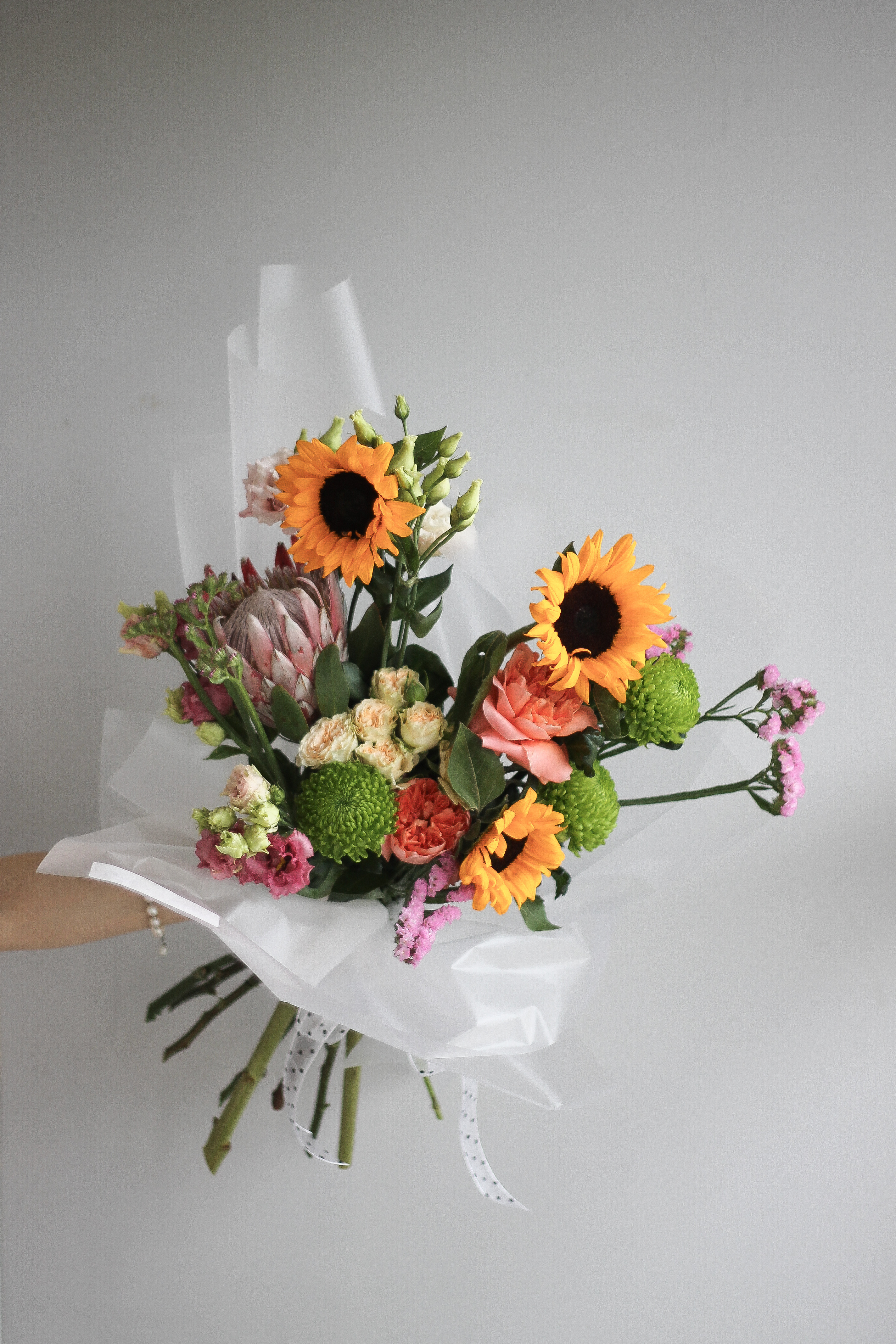 Состав букета может быть незначительно видоизменён в зависимости от сезона и наличия цветов. Уточнить подробности по наличию можно у менеджера по тел.+375(44)544-77-33
