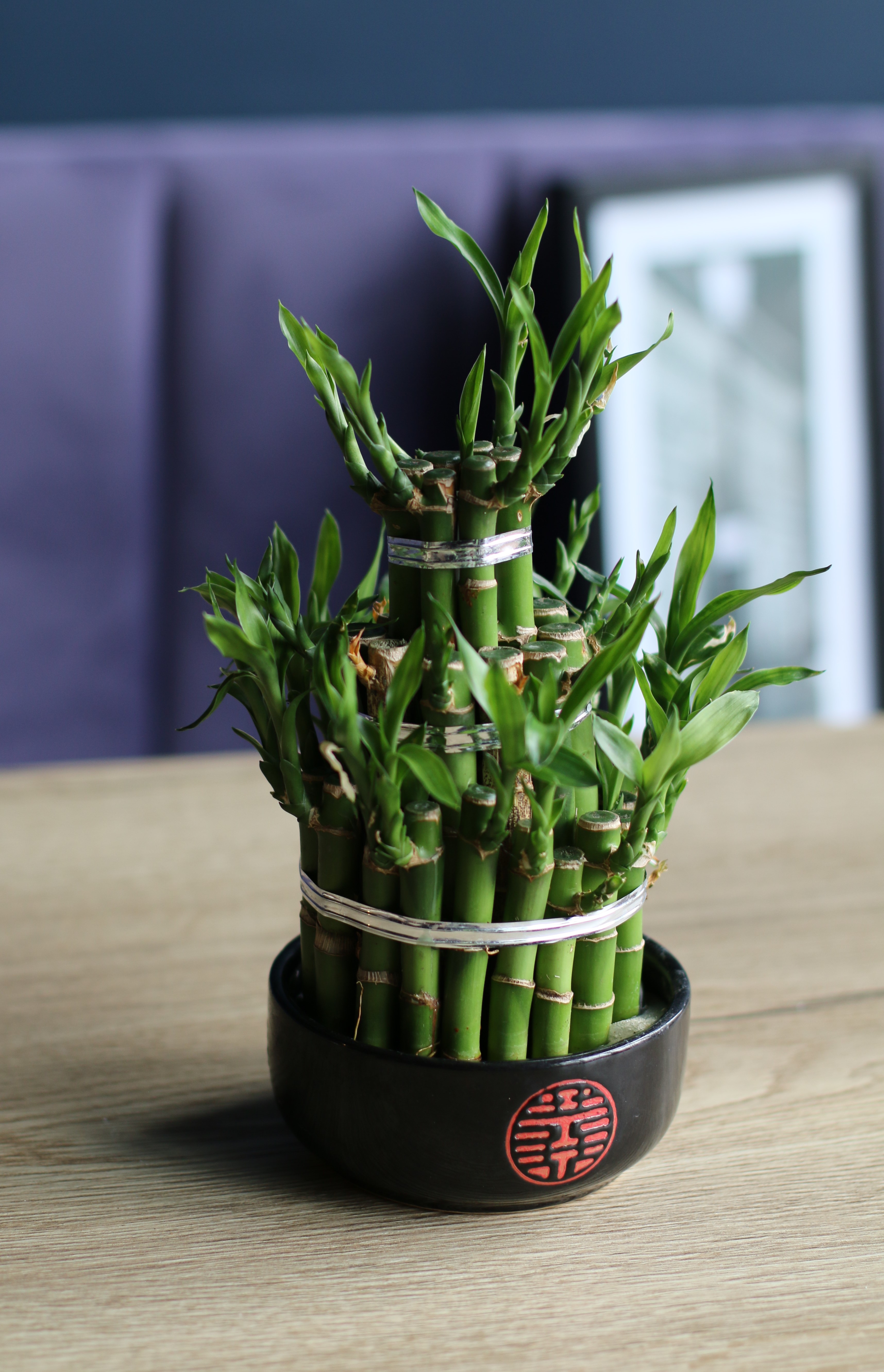 Уход за растением проще простого! Бамбук находиться в мокрой губке, вам не нужно регулировать полив, следить за просыханием почвы. Все, что нужно - это просто поддерживать постоянный уровень воды в кашпо. Так же бамбук любит опрыскивания. К солнечному свету не прихотлив, потому прекрасно будет себя чувсвовать в любой части комнаты.